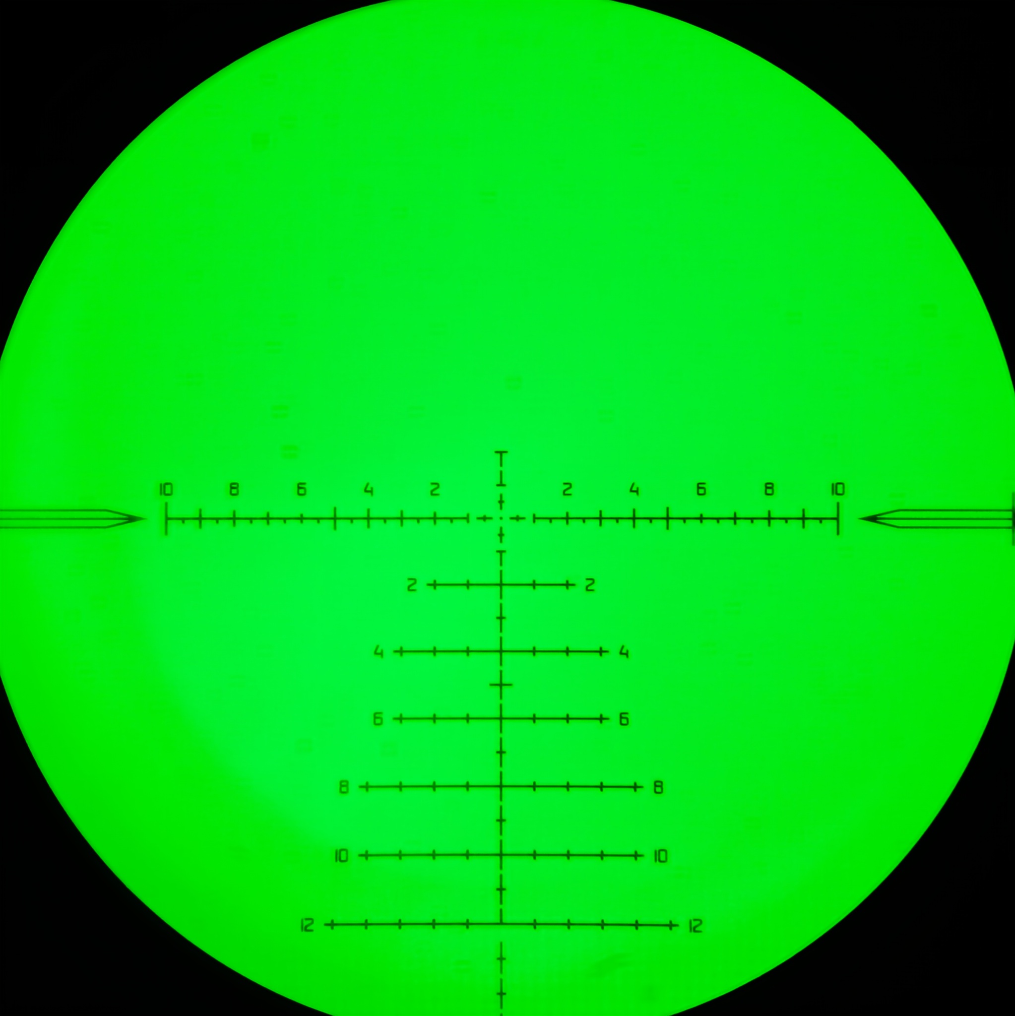 Сетка – вариация классического милдота. Центральное перекрестие с отдельно стоящей точкой размером в 4 десятых мила. Не самая тонкая сетка, но она остается работоспособной и читаемой во всем диапазоне кратностей, начиная от 3х, чем, увы, не могут похвастаться его одноклассники, где для работы по сетке приходится выбирать оптику во второй фокальной плоскости. Здесь же сетка в первой фокальной плоскости.